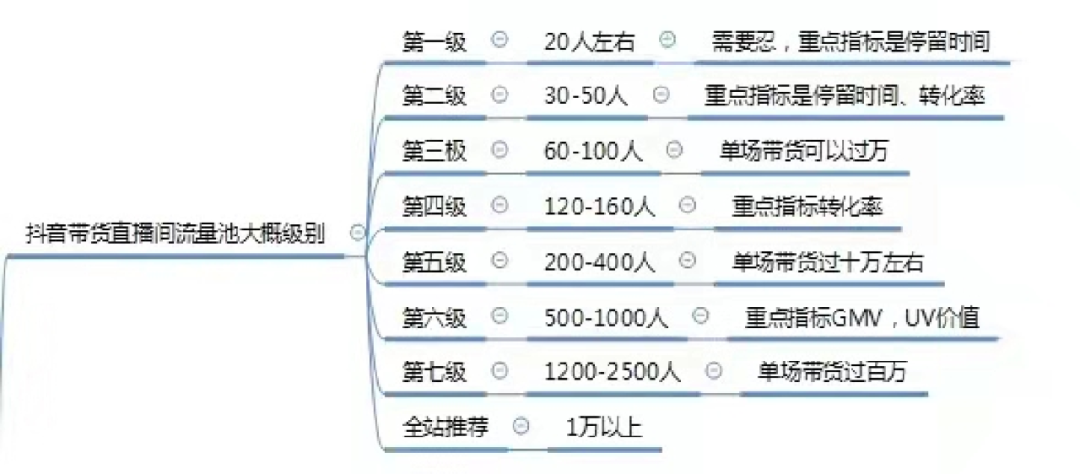 抖音带货直播的流量池,呈阶梯型,大致如下: