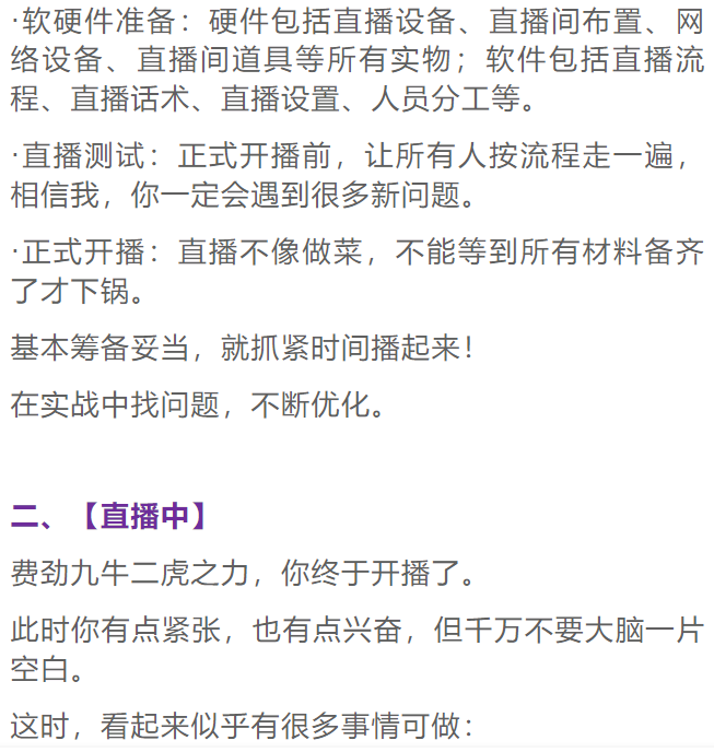 我们从直播前、直播中、直播后三个关键时间点,简略梳理下整个流程。