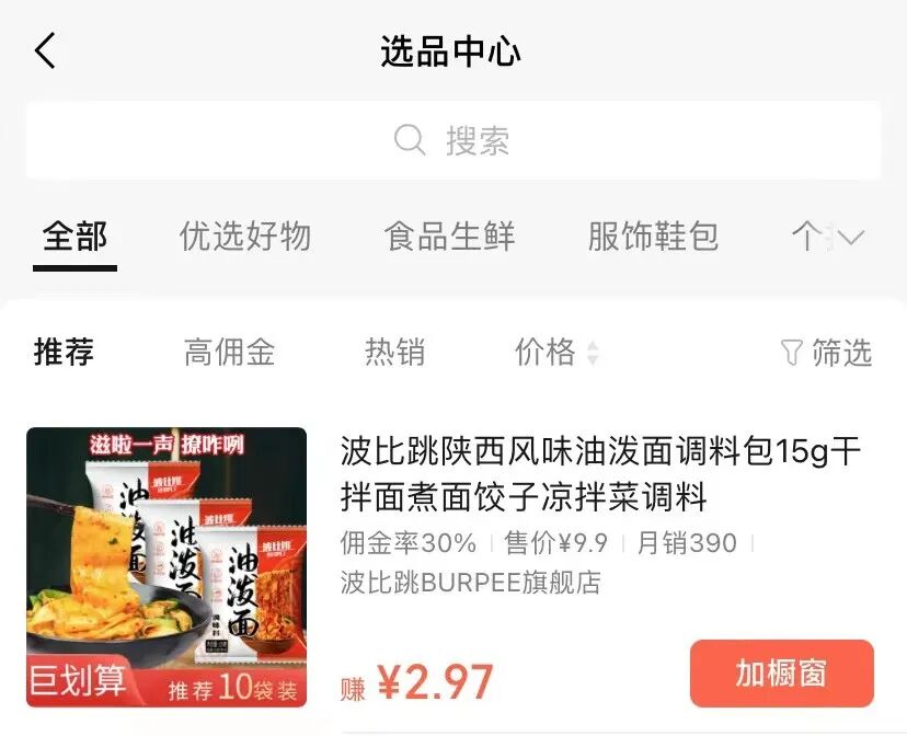 缴纳100保证金,开通橱窗,我们就可以在视频号优选联盟选品了,根据佣金高低来选择你要卖的品。