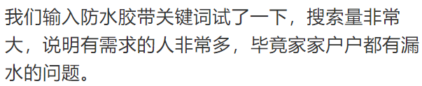不过,不得不说人家这个品选的不错,防水胶带,生活中经常会遇到漏水的各种问题,防水胶带刚好能解决这个问题。