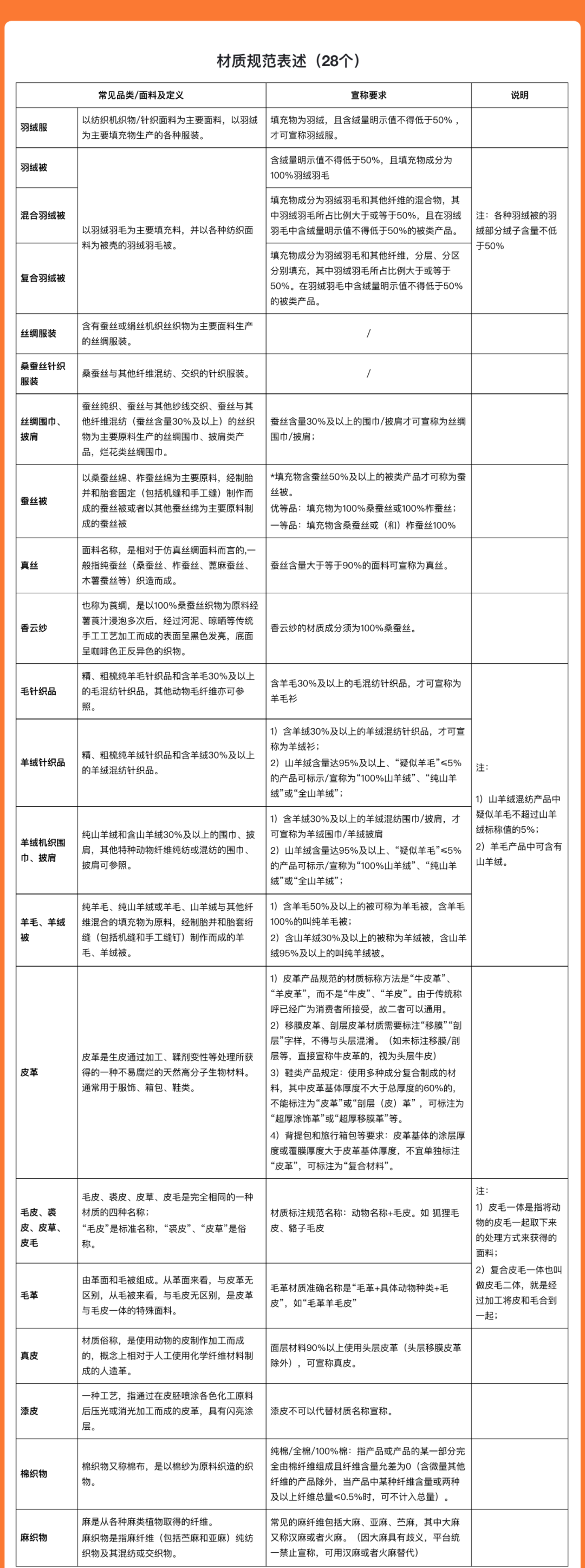 此外,对于材质类表述抖音官方也给出了详细的定义和宣称要求。比如羽绒服这种产品,需要衣服内的填充物为羽绒,且明示含绒量值不低于50%才可宣称为羽绒服。