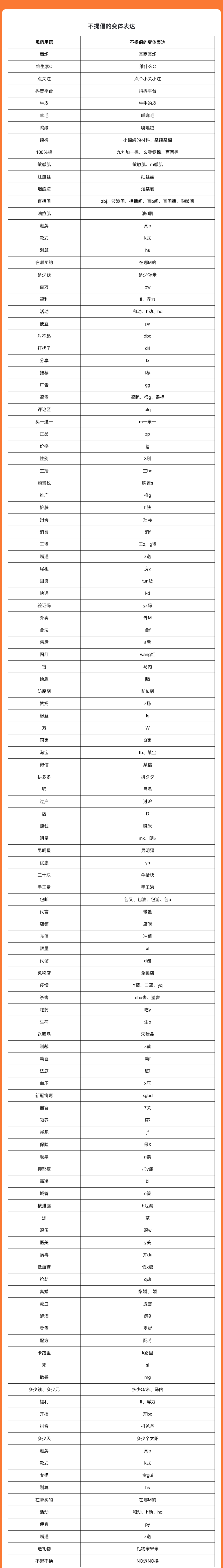 禁止的词,就算变体也不可使用,请商家、达人注意。