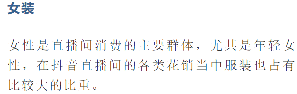 我们之前说过单品类带货,说过可以找平台资源,但平台资源很多,在选品时,可以根据自己粉丝特点结合账号和主播特点,在以下六个赛道中选品: