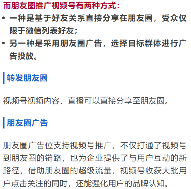 朋友圈广告以日常分享视频号内视频的形式展示,用户点击卡片素材即可跳转视频详情页。