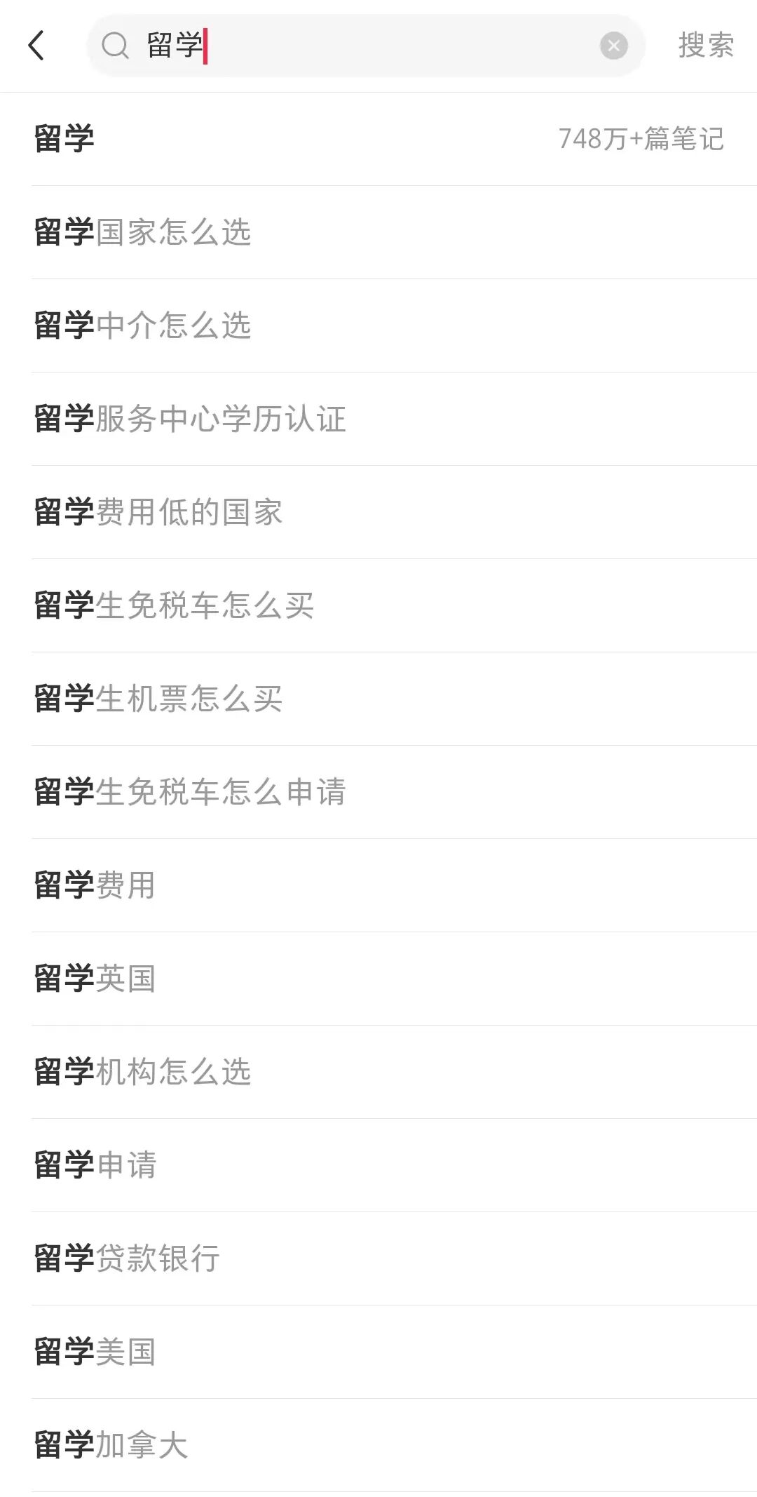 小红书搜索栏输入某一关键词,会自动弹出很多个相关词。这些相关词都是根据相关笔记数量、用户搜索频率和系统推荐热度综合排序的。排名靠前的相关词就是我们需要留意的,都可以作为选题的角度。