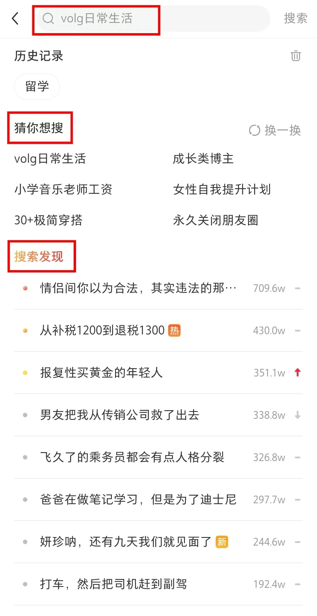 搜索发现:近期搜索的高频词,也是平台的热点。