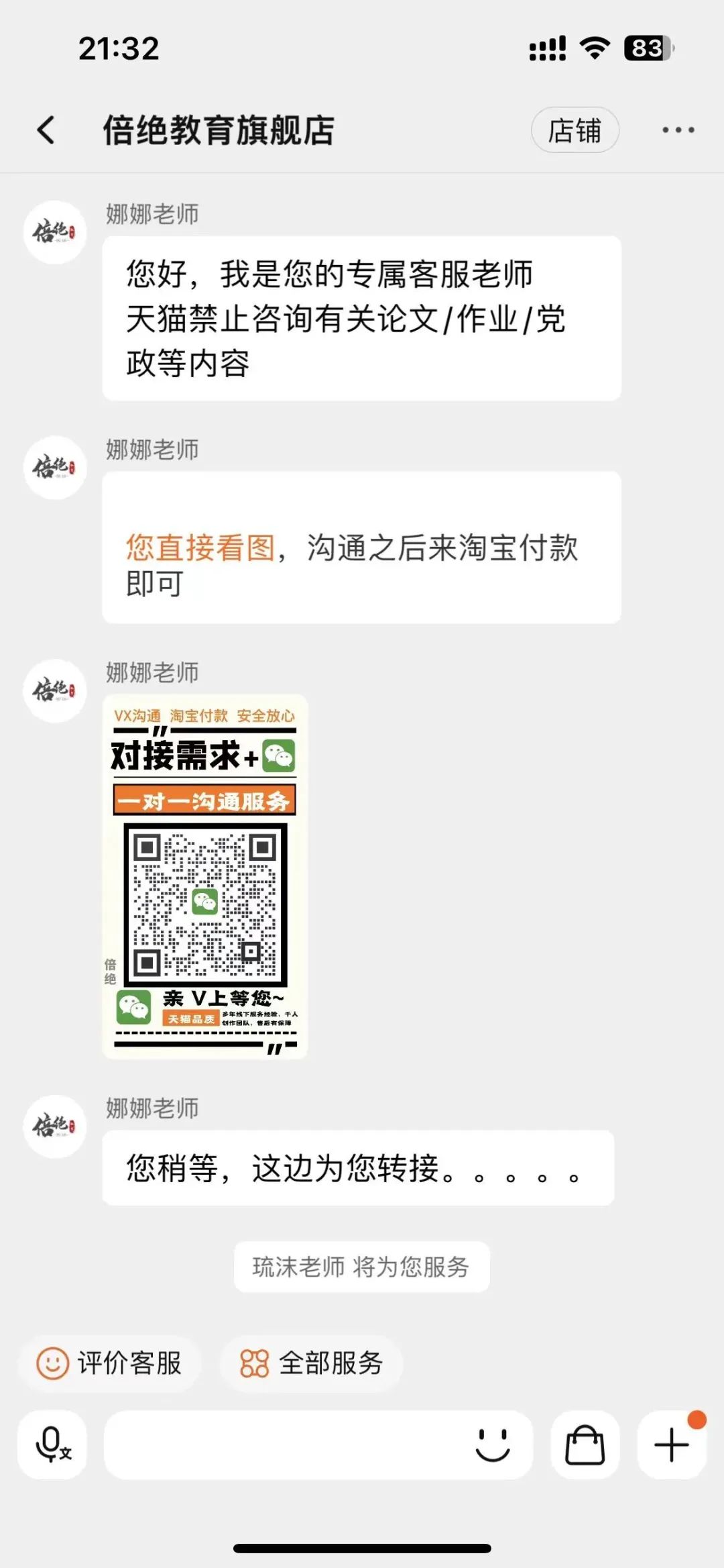 首先打开我们得淘宝、然后搜索「代写」,点进去宝贝里面去找客服,直接问就好了,把搜索前50的店铺全部问一遍。