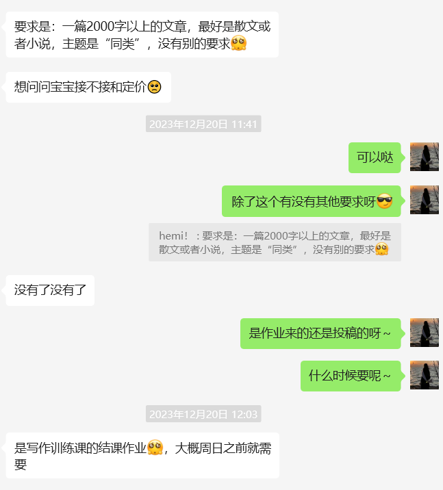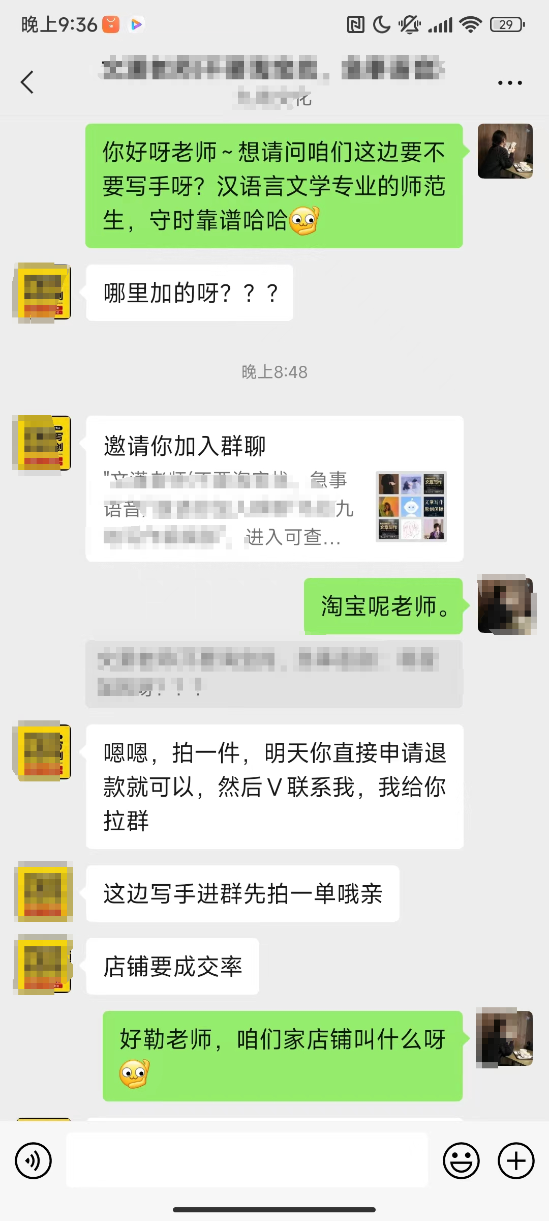 正常来说,这些店铺都需要储备一些兼职写手的,大部分会回复你一个微信二维码,直接加微信继续聊就OK了。