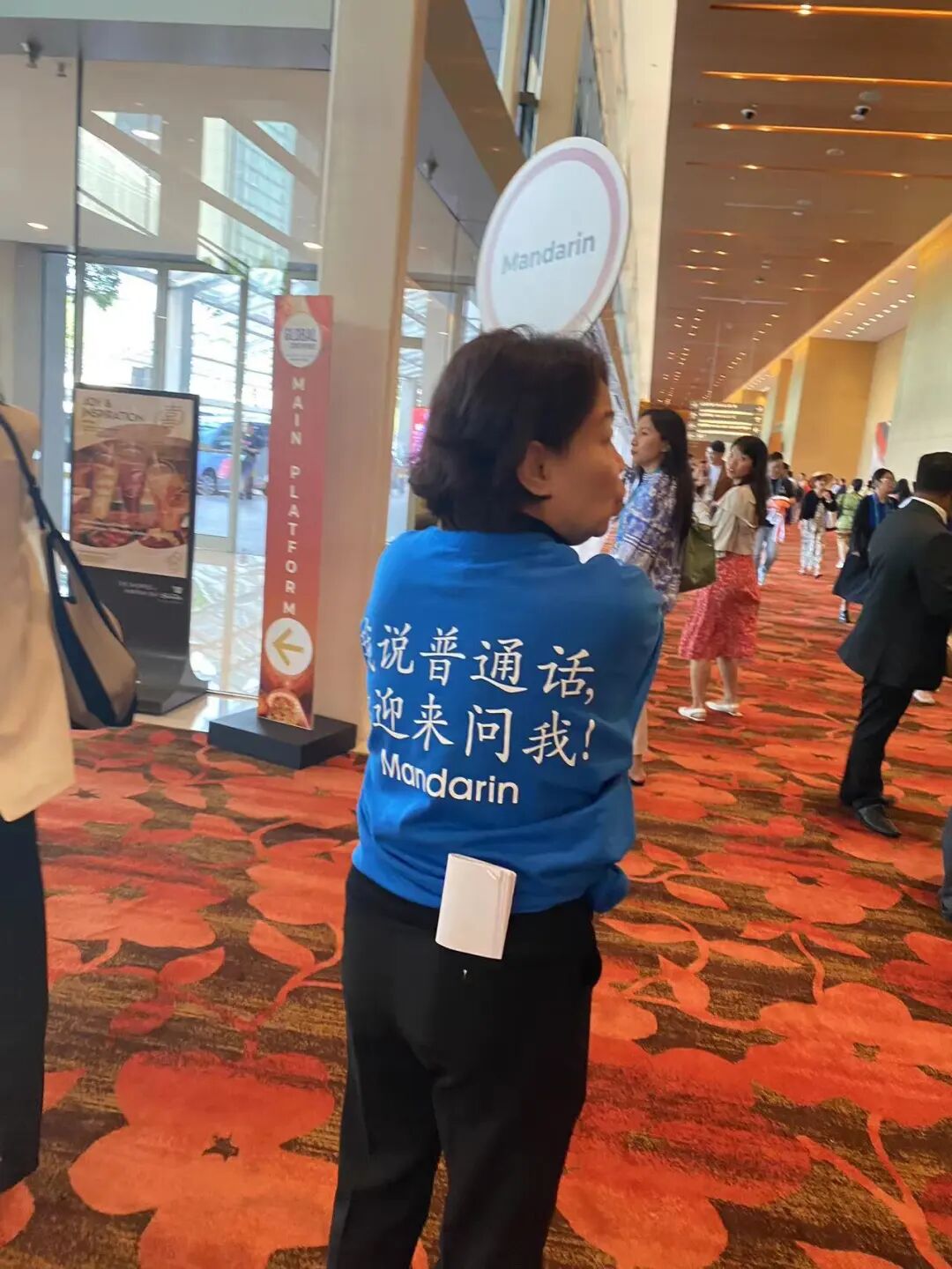 (今年参加新加坡MDRT大会的抓拍照片,志愿者背上印的是: