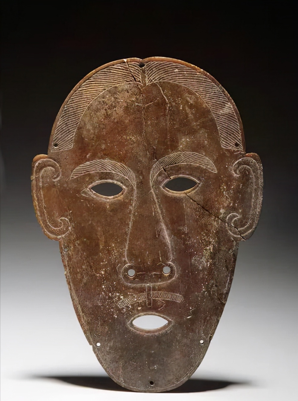 三天后,叔侄两人再次来到这个墓穴。侄子用手电筒仔细查看地面,突然哈哈大笑起来。他指着地上一张面具对梁有志说:“叔叔,那天就是这个东西吓到你了吧?”说完,他捡起地上的面具仔细观察。这张面具并非普通面具,而是用玉雕刻而成,栩栩如生。