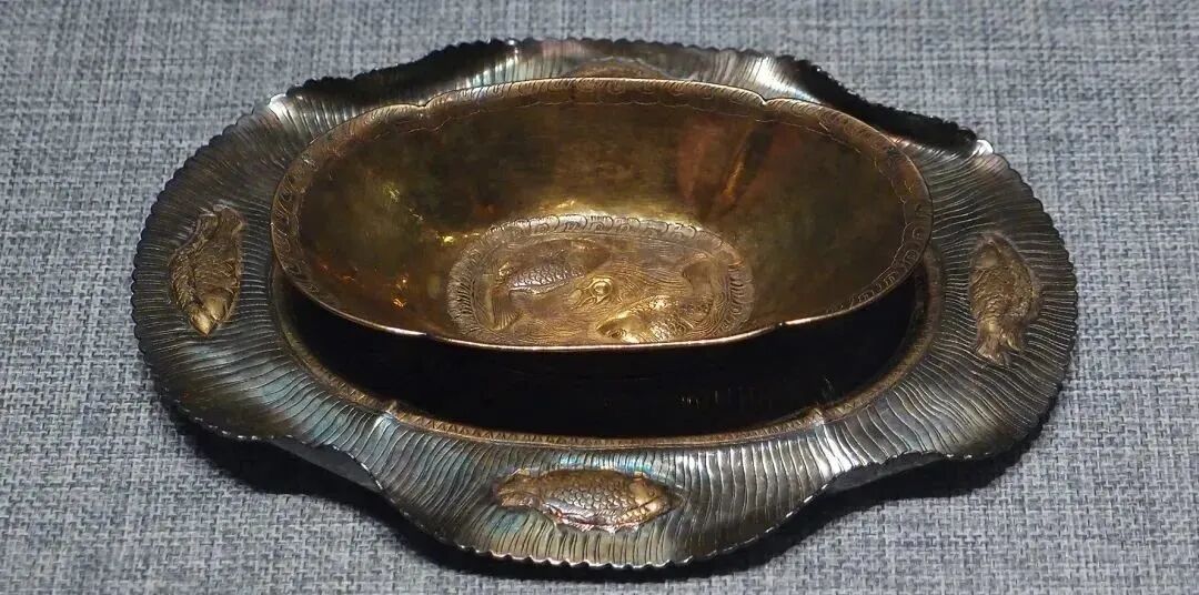 其中双鱼纹海棠花形金盏尤为引人注目,金盏里两条金质鱼儿栩栩如生,相当精美罕见。这个金盏正是王某最先挖出来的那个,如今已成为洛阳博物馆的镇馆之宝之一。