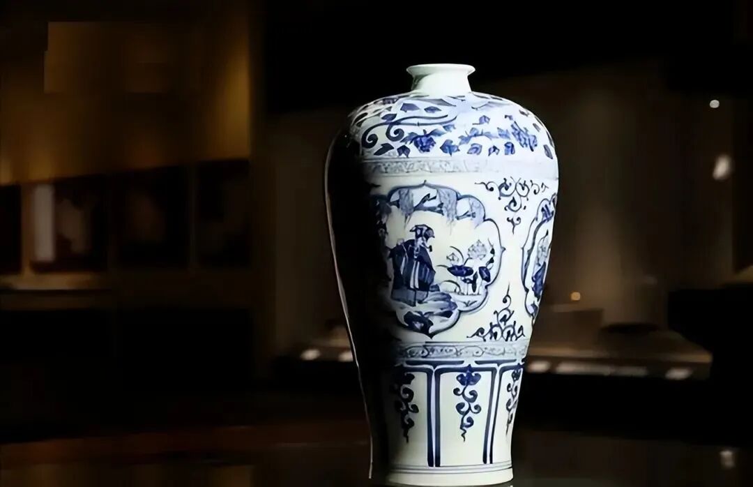 该梅瓶的造型、胎质、纹饰、袖色等与传世同类器物相似,但瓶身所绘的“四爱图”却独具特色,展现了王羲之、陶渊明、周敦颐和林和靖四位古代文人雅士的爱好。这种以人物故事为主题的青花瓷在元代非常罕见,因此该梅瓶更是备受瞩目。