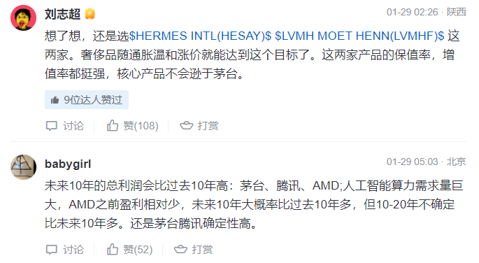 但段永平表示,自己了解的公司很少,在他比较了解的公司里,未来10年总利润能比过去10年总利润更高的公司可能有:苹果、腾讯、茅台、伯克希尔Brk、微软、谷歌。拼多多应该也算一个,但那是因为拼多多过去10年还没怎么赚到钱,麦当劳可口可乐这类消费品公司打败通胀的概率应该很大,所以应该也算。至于20年后,苹果、茅台、微软、谷歌、腾讯应该还在。