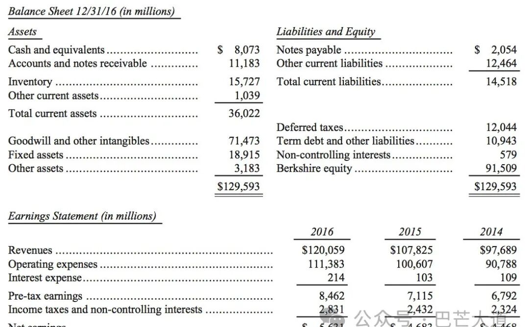因此,在这份信中,我们将这两家公司进行了单独区分,并将它们合并后的财务报表也从我们的符合美国通用会计准则(GAAP)的资产负债和损益表中剥离出来。去年,这两家主要企业的收入占伯克希尔-哈撒韦公司整个税后收入的33%。