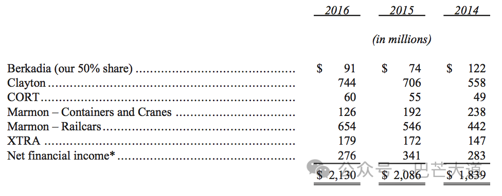 未来一段时间内,我们预计将继续扩大轨道车租赁业务的规模。与此同时,Marmon公司也在进行一系列补强型并购交易,这些交易对公司财务业绩的影响将在制造、服务和零售章节中具体描述。