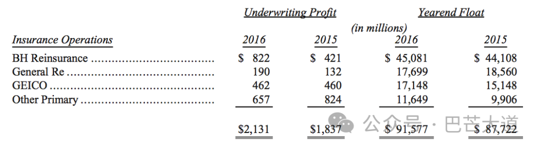 事后证明,这绝对是一个英明的决定:最初,我们预期这家公司将会在成立伊始的数年中出现重大亏损,因为在全球业务实施过程中,皮特·伊斯特伍德首先需要建立与业务相关的人员和基础设施等基本条件。相反的是,在公司成立之初的创业期间,皮特·伊斯特伍德和他的团队就已经为公司贡献了显著的承保利润。2016年时,伯克希尔·哈撒韦公司的业务规模已增加40%,至13亿美元。显而易见,这家公司注定将会成为全球一流财险公司(P/C insurers)中的佼佼者。