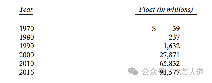 如果我们的周转金是零成本且长期的,我相信它将是这样的,这一负债实际值就远低于会计意义上的负债值。欠下将永远不会离开房子的1美元与欠下明天就将出房门且不能被取代的1美元,是两码事。然而这两种类型的负债在美国通用会计准则下被平等对待。