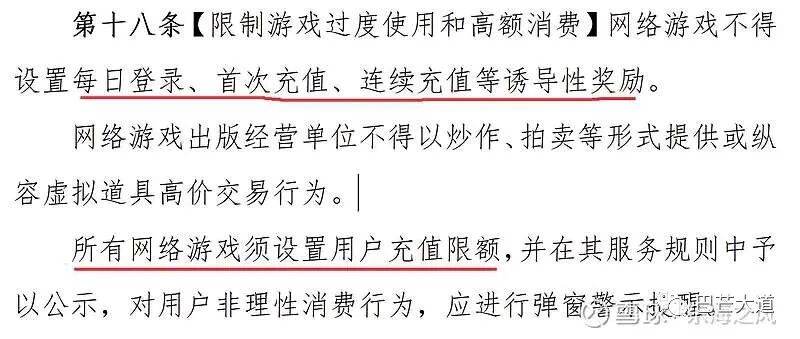 段:还没看到完整的文件,只看到网上转述的大意。诱导式充值确实不厚道,能限制一下会更健康。感觉新规不会影响大家花在游戏上的总时间。其它影响还需要时间去理解。老规矩,掉一次买一点点,慢慢来。