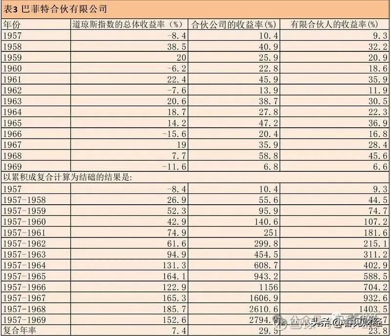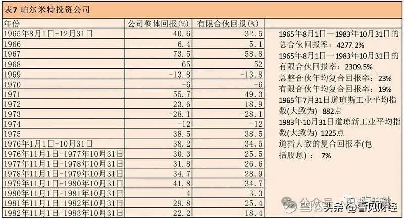 格雷厄姆-纽曼公司第三位员工的投资业绩记录。他在 1957 年成立巴菲特合伙公司,他所作出的最明智的决策就是在 1969 年结束合伙公司。从某种意义上讲,从此以后,伯克希尔哈撒韦公司在某种程度上成为合伙公司的延续,我无法给各位一个能够公正衡量伯克夏公司投资管理水平的单一业绩指标,但我认为,不论采用任何衡量指标,你都会发现伯克希尔的投资业绩一直都令人相当满意。