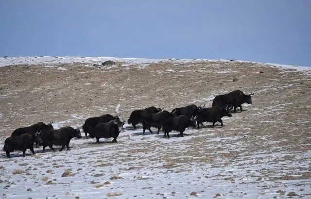 野牦牛,身躯高大,体重在500到600公斤之间,是一种能够在极端高海拔环境中生存的巨型草食动物。然而,这场暴雪让它们感到困惑,因为大雪覆盖了植被,它们几乎无法找到可供觅食的野草和苔藓。