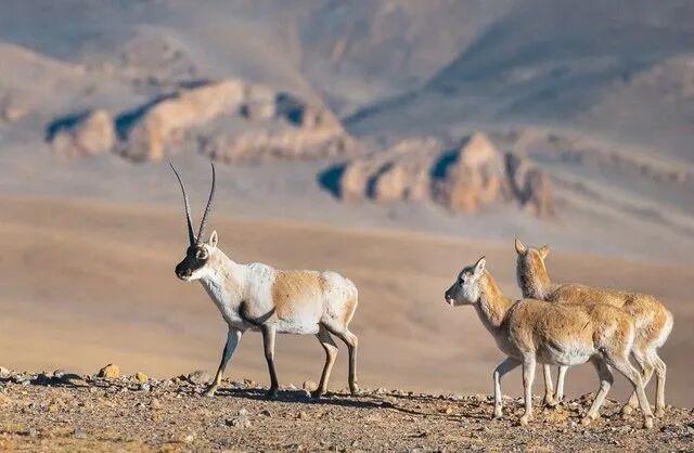 藏羚羊们感到了前所未有的威胁,它们开始惊慌失措地四处奔逃。然而,在这危急的时刻,一只母藏羚羊却展现出了惊人的智慧和勇气。