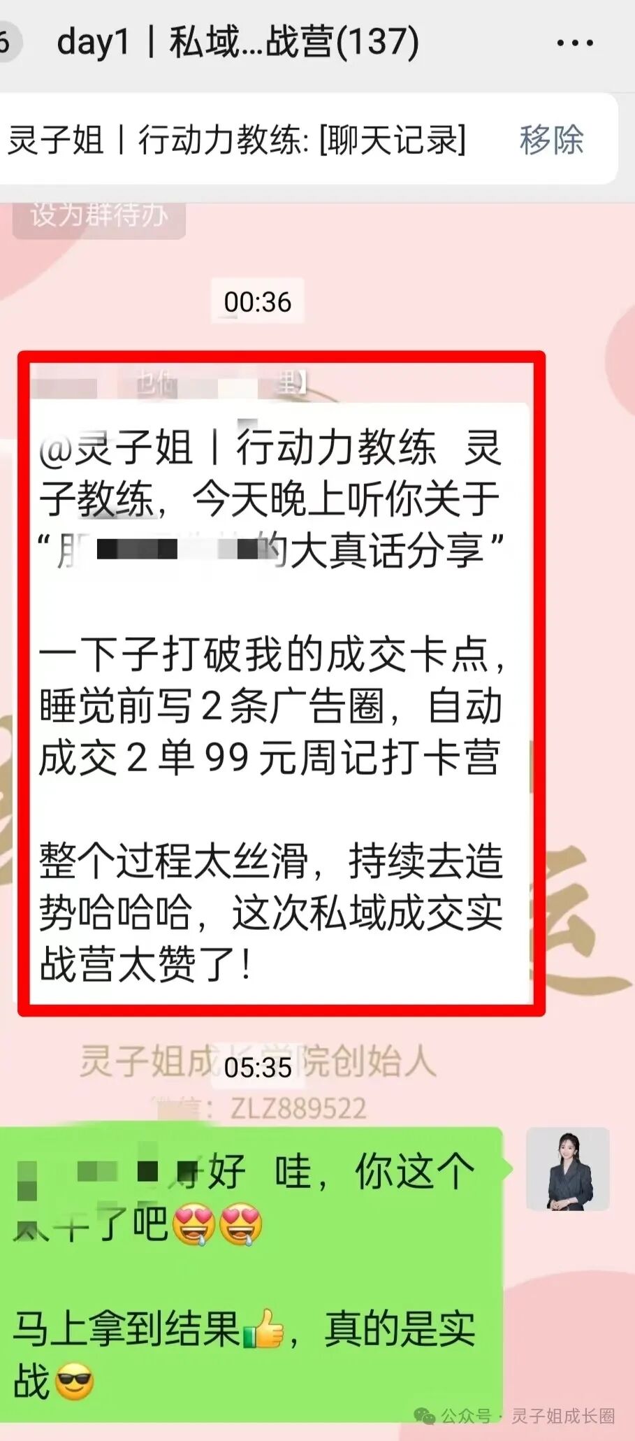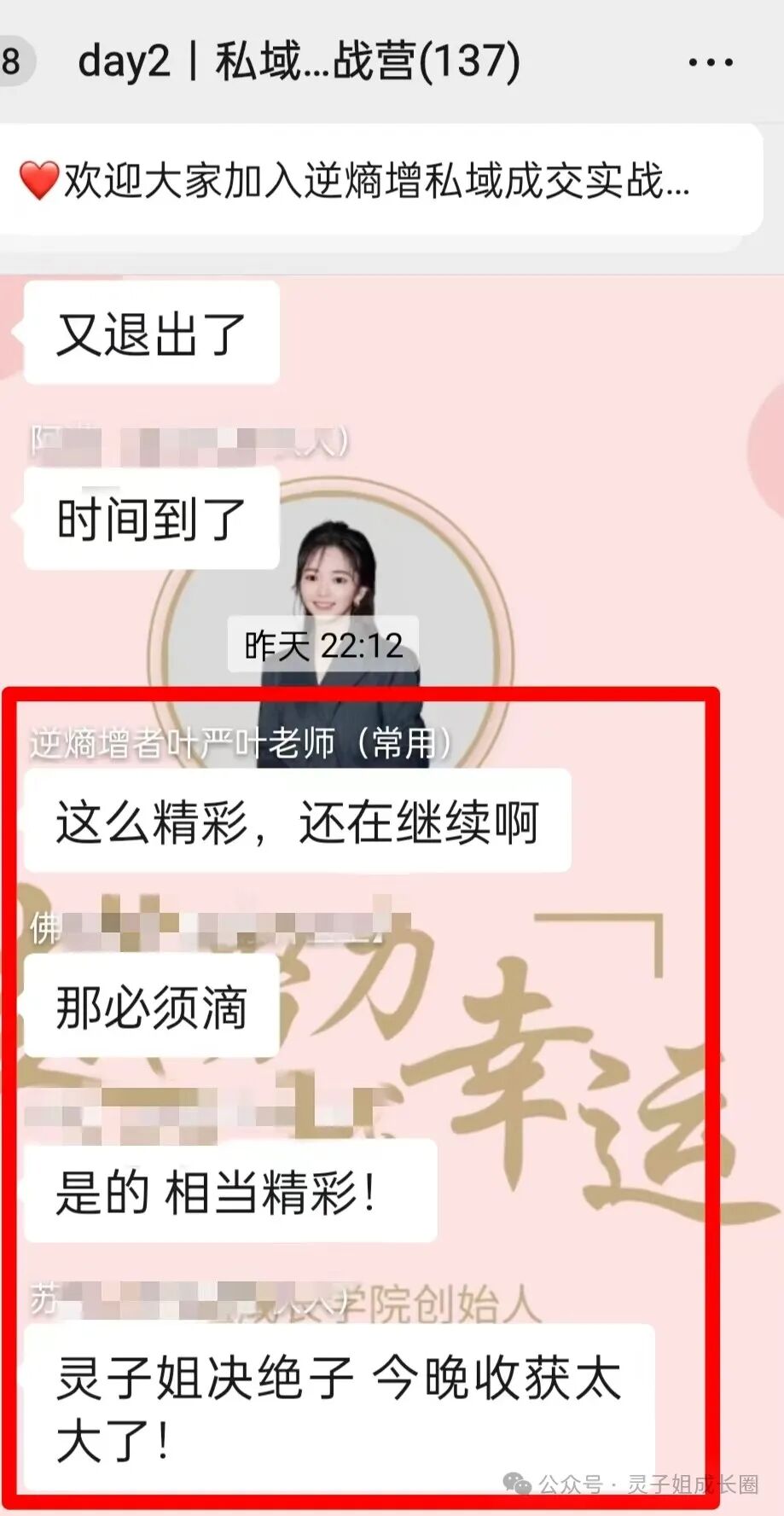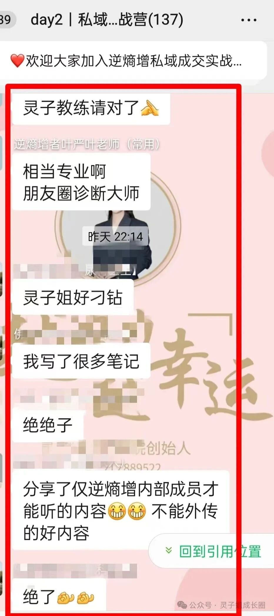 这段时间在做逆熵增私域成交实战特训营的营长,带领120多位学员一起打造吸金的朋友圈,叶老师为何选择我也是因为我的朋友圈打造得更加有温度的原因。