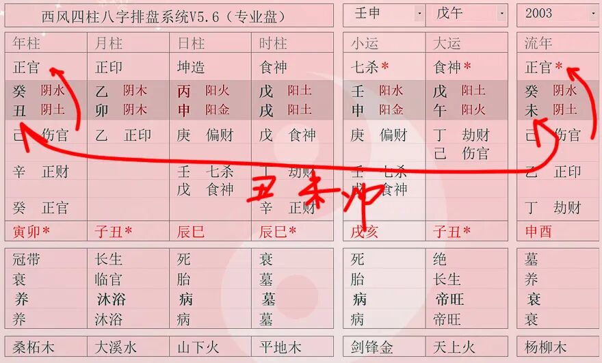 明万历四十一年二月初八日(1613年3月28日),博尔济吉特·布木布泰出生,她就是后来有名的孝庄文皇后,也就是《康熙王朝》中自称“我孝庄”的康熙的奶奶。根据这个生日,孝庄皇后四柱的前三柱是“癸丑 乙卯 丙申”,时辰不知道。目前网上有很多孝庄皇后的排盘,但我估计其时辰都是臆测的,所以我们只看前三柱就可以了。至于我排盘的时候时柱用戊戌,是根据孝庄晚年推断,不可作为依据。