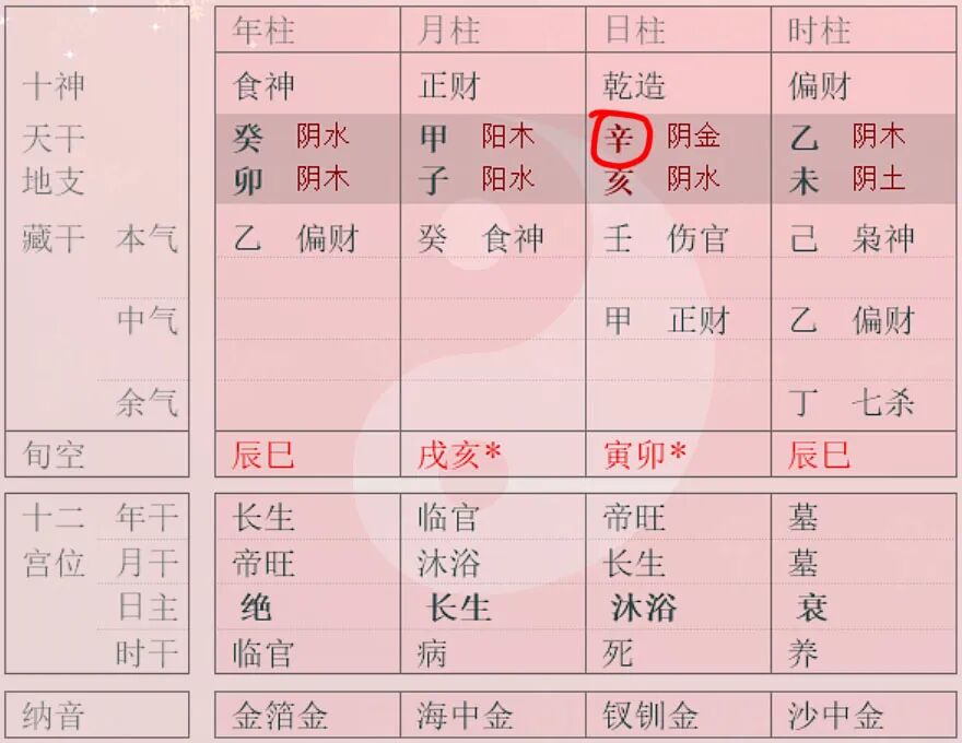 我们在计算十神的时候,日主是不在其内的,这是因为十神是日主周围的人,或者资源,它们可以与日主分离。但是,如果是干支或五行,则与日主不可分离,否则就真是“不在五行中”了。