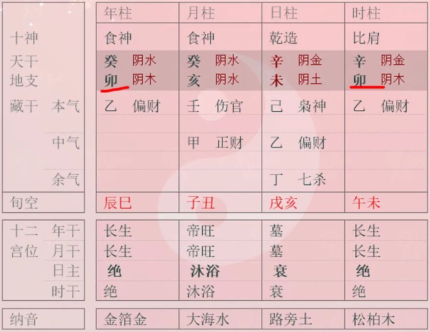 以上面这个八字为例。命主衰弱无力,地支亥卯未三合成财局,看似为从财格。但是,此八字地支有两个卯都是财星,命主到底从哪个财呢?是从年支的卯,还是从时支的卯?所以就会陷入选择困难。因此从严格意义上来说,上面这个八字并非从财格。