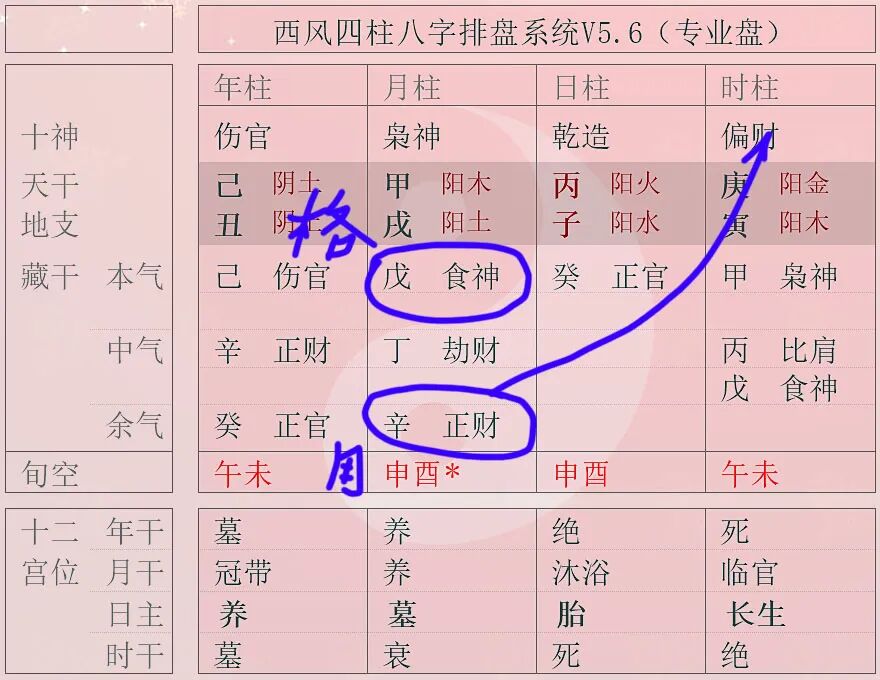 但是,《渊海子平》这段话中的“用神”并非取自“用事”的人元司令。根据《渊海子平》的人元司令分野,九月建戌,辛金用事9日,丁火用事3日,戊土用事18日,因此戌月中旬其实是丁火和戊土用事而不是辛金,此处的用神纯粹是以月令透干来取,跟“用事”的人元没多大关系。那么,这段话中为什么单说财星透干呢?因为财官是命主最需要的两件资源,一般取事业用神首取财官。