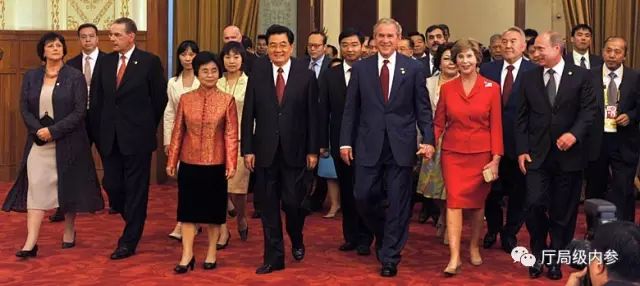 2003年普京宴请胡锦涛夫妇的晚宴前交谈