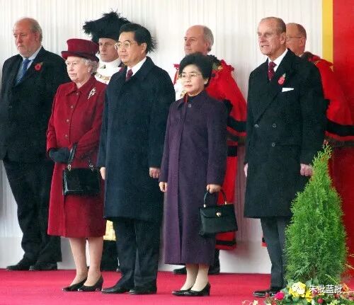 2005年11月出席英国女王举行的欢迎仪式
