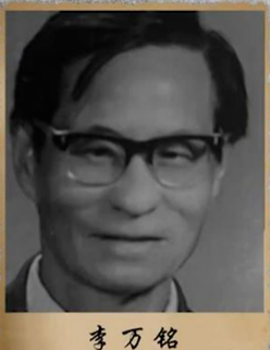 李万铭(1927—1991年),别名李铭,陕西省安康县人,出身于一个地主兼营商业的家庭,还有个孪生弟弟李万钰。他家曾开过粮栈、酒铺和山货店。