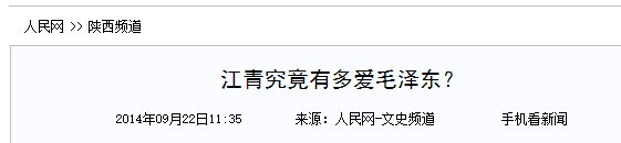 在人民网文史频道发布的《江青究竟有多爱毛泽东?》文中:
