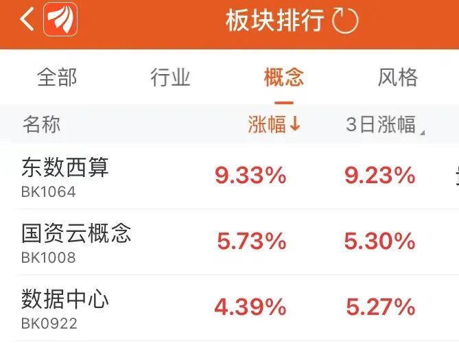 了解完这个市场与现实的关系,我们就聊聊“东数西算”,这个板块今天涨了9.33%,甚至前几名的板块都和它有关系。(你们把这篇文章作为投资的方法论,或者科普,而不要抄作业,不熟悉没信心的东西不碰。)