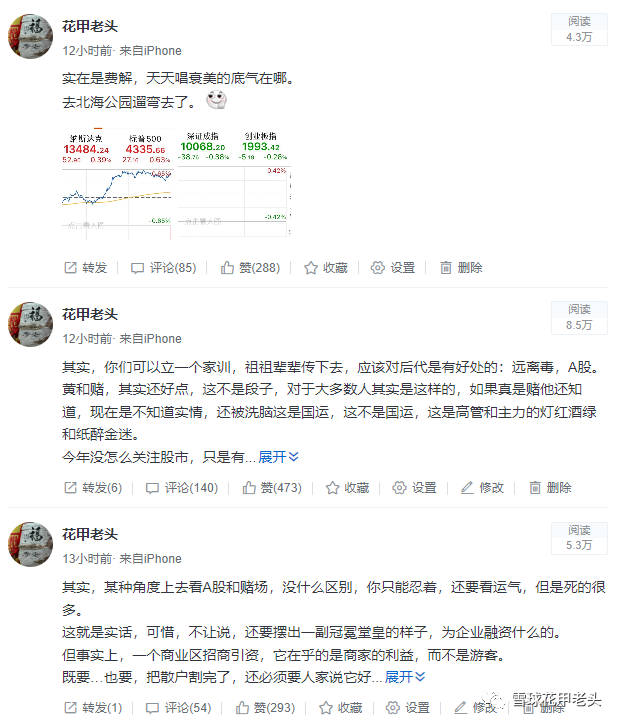我今天发了几条关于股市的讨论,很多人还说:“寿老,你怎么还看不惯了,市场不是一直如此么?”