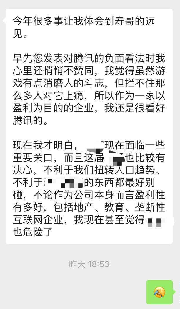 昨天收到一份读者留言,我觉得可以分享一下(隐藏了一些那啥的信息)。其实她认识到了一些问题的关键点,很多人只是分析利润、财报、业绩。他们甚至连最应该重视的东西都不考虑,这样投资是盲目的,这样创业也是盲目的,即使找工作也是盲目的。