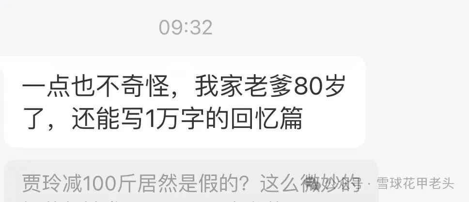 早上备用号里的文章有个读者私信,说他父亲八十来岁还能写一万字的回忆。