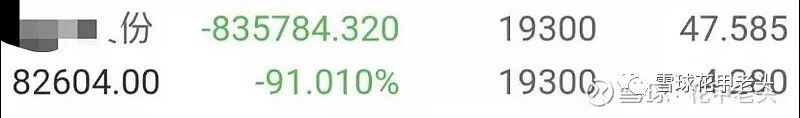 第二个例子,也是一个跟我聊天的朋友,我看了她的账户也是惊讶,一只股票买入了100万,现在市值8万多,盈亏比例-91%。