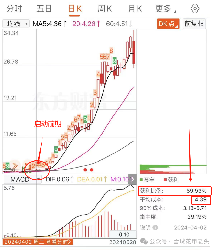 在启动前期的震荡区间里,平均持有成本是4元多,获利比例也超过了50%。