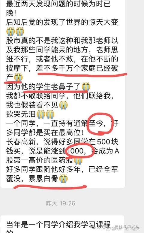 从高位让自己的学员买入各种白马,并且一路按摩至今,很多人亏损严重。