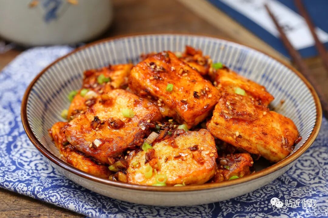 首先,选择老豆腐,因为老豆腐水分较少,质地较硬,煎的时候不容易碎,在煎之前,将豆腐块用水清洗,沥干表面的水分,然后在锅中倒入适量的食用油,小火加热,这时的第一步很关键,加入少量食盐,由于食盐不溶于油,它能够在高温下起到隔离作用,使得豆腐不会粘锅。
