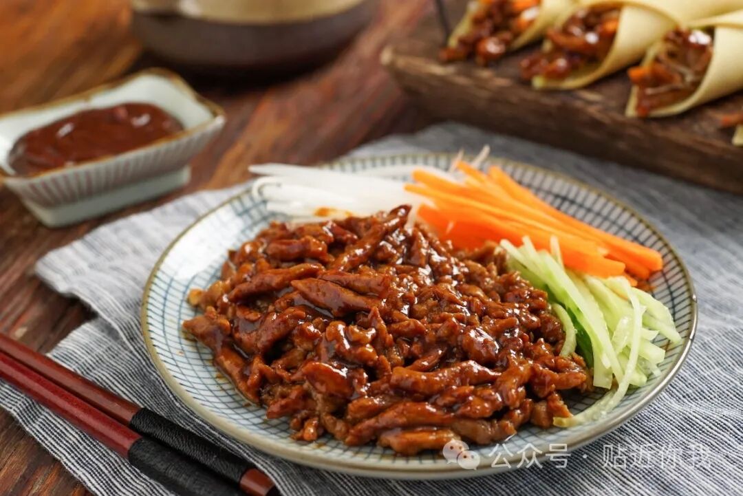 京酱肉丝,不仅是一道传统名菜,更以其“花开富贵”的独特造型彰显了新春的氛围,这道美食以嫩滑的豆腐皮裹着香醇的里脊肉,搭配上色彩鲜艳的蔬菜花朵,如同一幅富贵花开的画卷,给年夜饭增添了一份艺术与美感。