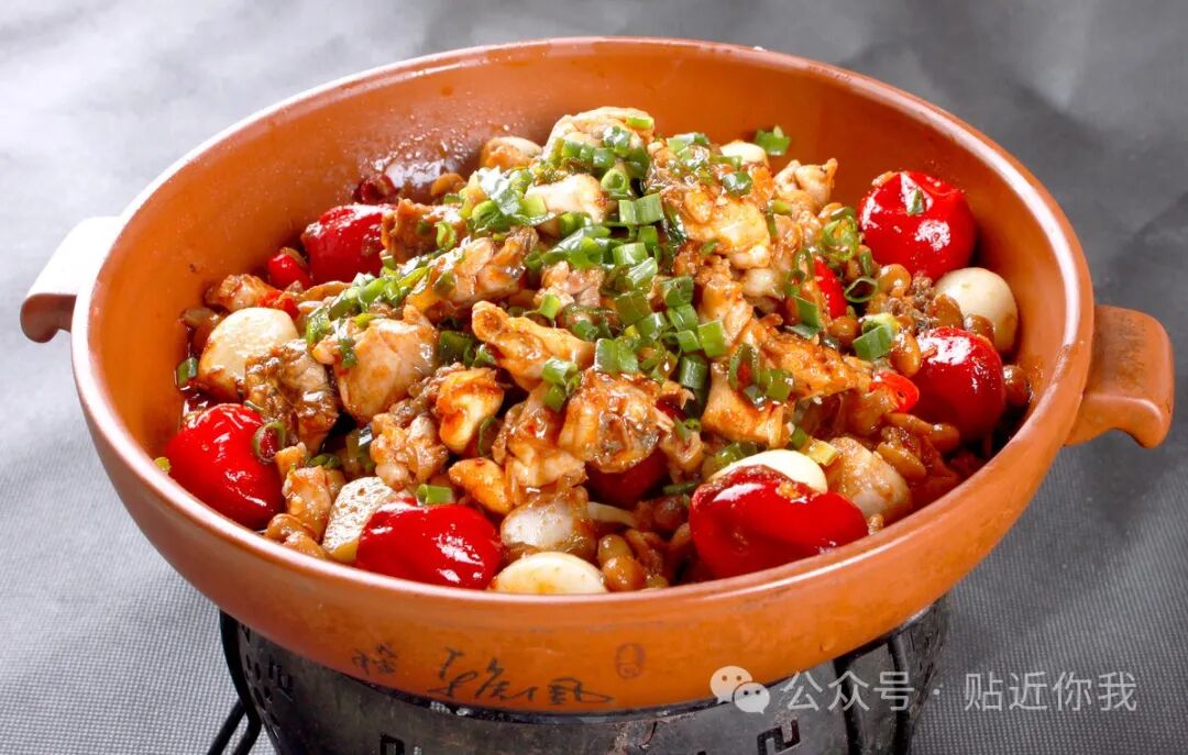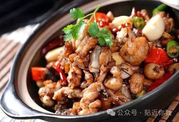 干锅牛蛙是一道中国菜,通常以牛蛙为主要食材,配以各种香料和调味料烹制而成,这道菜以其麻辣的口味而闻名,是四川和重庆地区的特色菜之一。