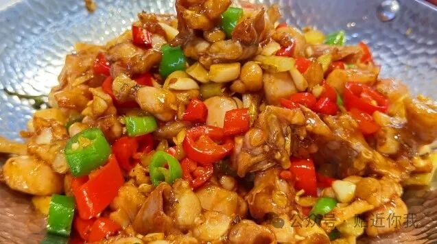 将炸好的牛蛙块加入锅中,翻炒均匀,加入适量的盐、糖、鸡精,调味均匀,炒至入味后,装盘,可以撒上一些葱花或花生碎,即可。