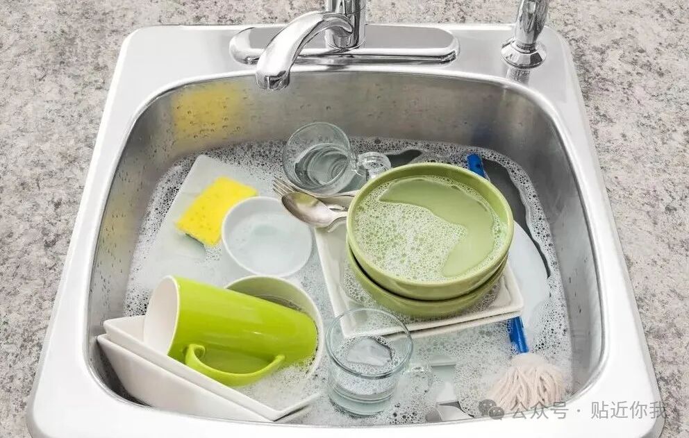 将脏餐具长时间浸泡在水中看似是一个让顽固污渍软化的好方法,但实际上这种做法会让细菌在温暖潮湿的环境中迅速繁殖。