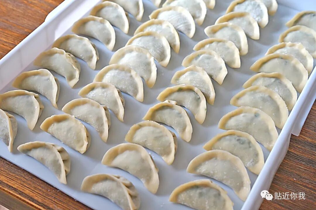4.包饺子:取适量的馅料放在饺子皮上,然后将饺子皮包起,并捏紧边缘。确保饺子包得紧密,以免在烹饪过程中馅料漏出。