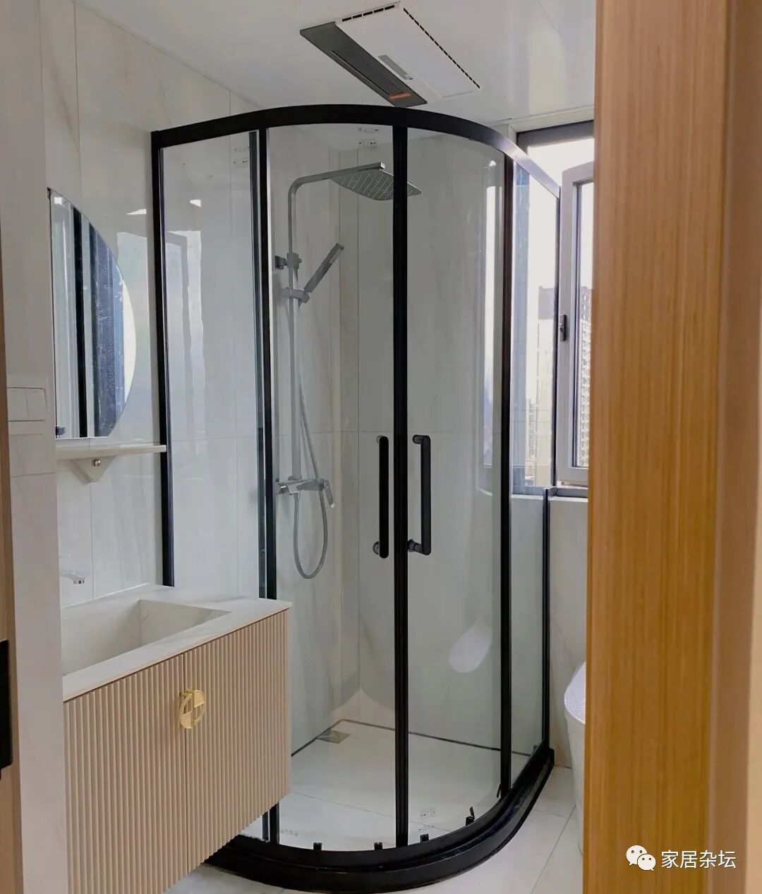 实现卫生间内功能上的干湿分离,那么个人建议大家安装玻璃浴房来代替传统的浴帘。