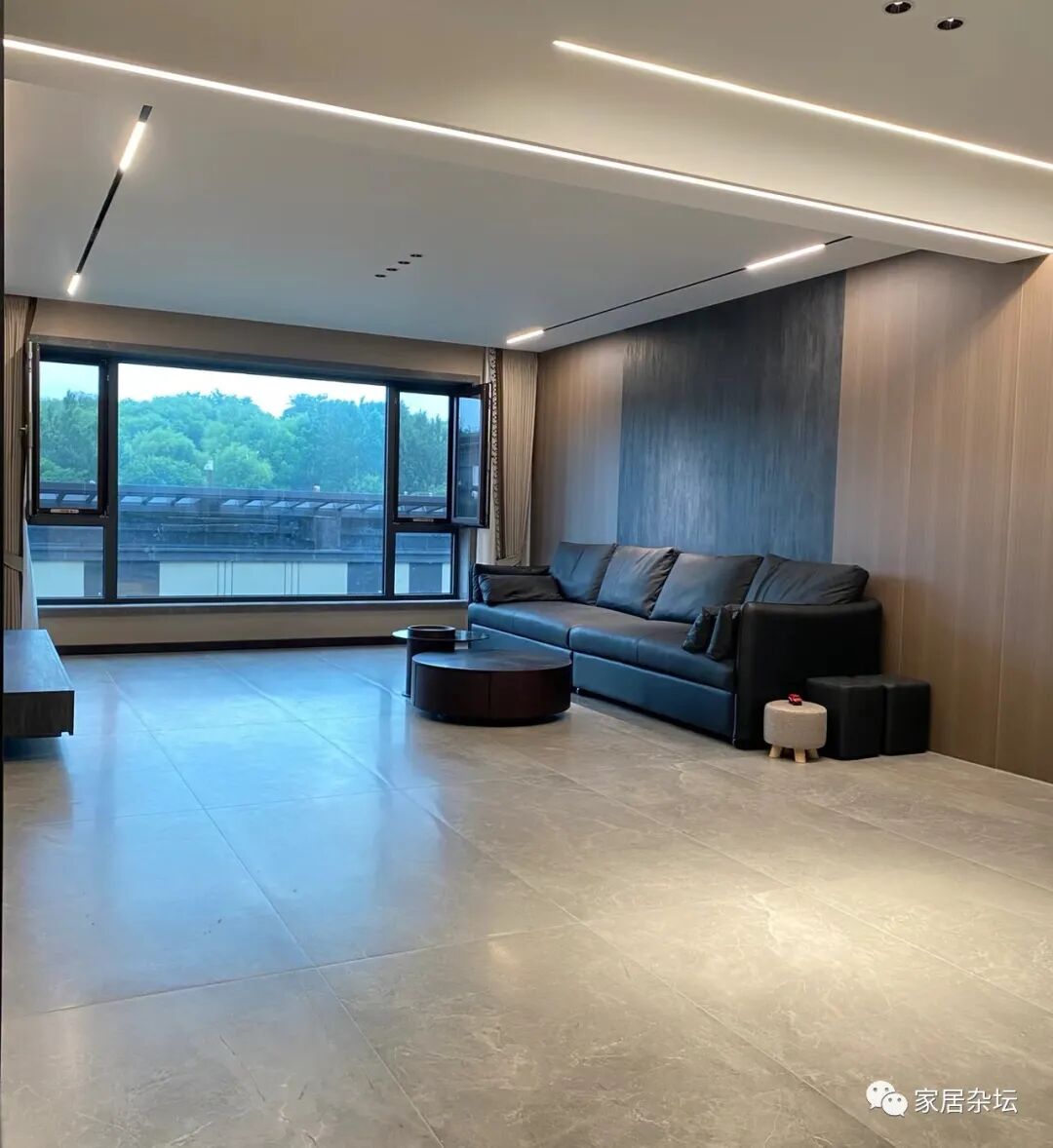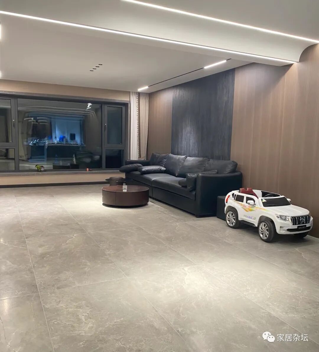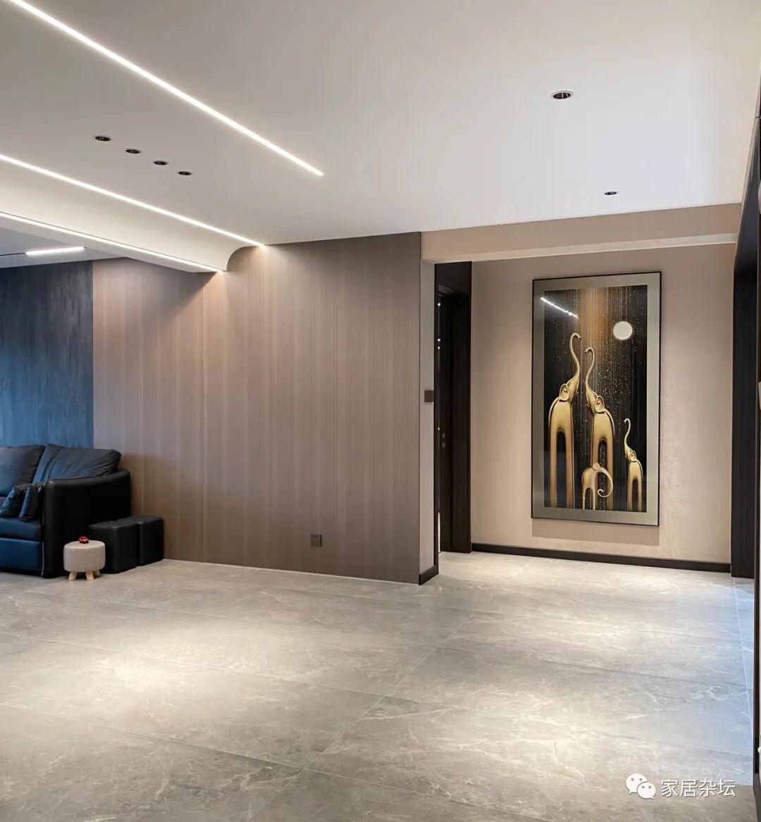 ②、大客厅建议大家使用750×1500mm的瓷砖。因为客厅面积比较大,例如达到了30多平米,40多平米。750×1500的瓷砖更利于排版,效果会更好。