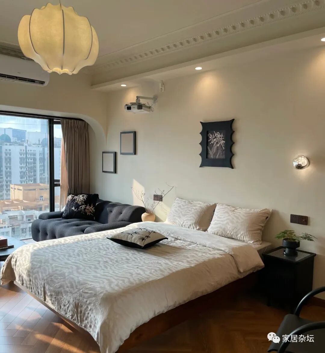 ①、对于卧室墙面,个人建议大家尽量减少这些木质材料的装饰品。无论是安装隔栅或者是安装护墙板,都要减少数量。